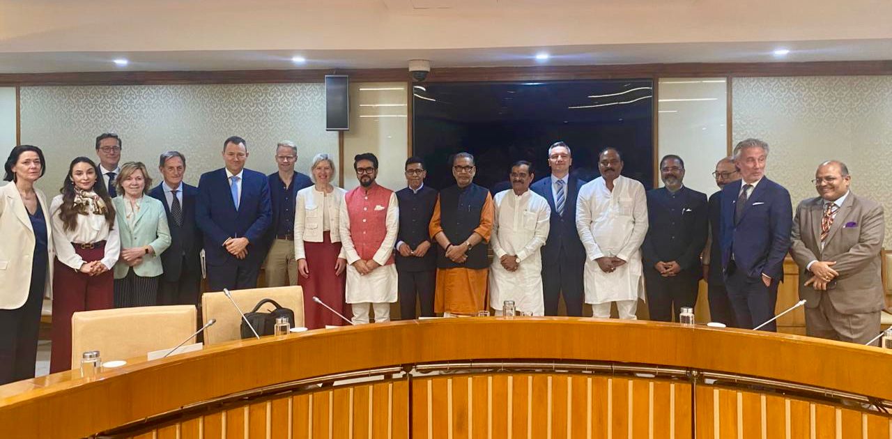 नई दिल्ली, 30 मार्च – भारत–यूरोपीय संघ संबंधों पर हाल ही में गठित संसदीय मैत्री समूह की पहली ऐतिहासिक बैठक आज नई दिल्ली स्थित संसद भवन में आयोजित हुई। इस बैठक में यूरोपीय संसद के भारत संबंधी प्रतिनिधिमंडल (D-IN) ने भाग लिया, जिसका नेतृत्व चेयरपर्सन एंजेलिका नीब्लर (जर्मनी, ईपीपी समूह) तथा उपाध्यक्ष नील्स फ्लेमिंग ने किया। भारतीय पक्ष से सांसद अनुराग सिंह ठाकुर की अध्यक्षता में गठित संसदीय मैत्री समूह के 11 सदस्यों ने सहभागिता की। यह बैठक नवगठित मैत्री समूह के अंतर्गत पहली औपचारिक संसदीय सहभागिता रही, जो भारत और यूरोपीय संघ के बीच संस्थागत संबंधों की गहराई को दर्शाती है। बैठक जनवरी 2026 में आयोजित भारत–ईयू शिखर सम्मेलन की भावना तथा उसके बाद द्विपक्षीय संबंधों में हुए व्यापक उन्नयन के संदर्भ में आयोजित की गई।