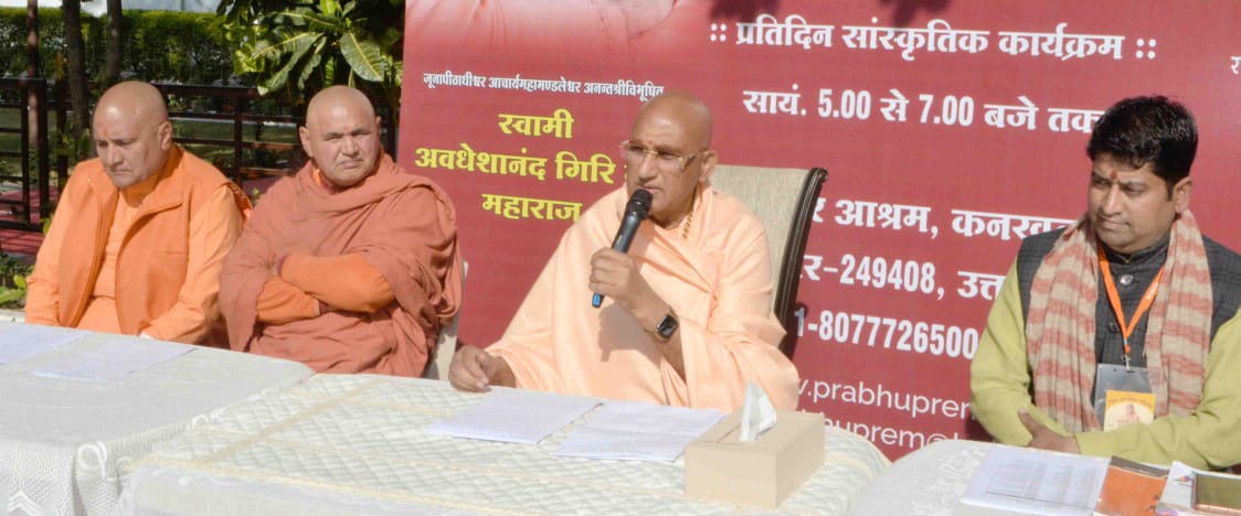 प्रैसवार्ता के दौरान महामंडलेश्वर स्वामी ललितानंद गिरी, स्वामी कैलाशानंद गिरी, स्वामी अपूर्वानन्द, स्वामी नित्यानन्द, स्वामी केशवानन्द, आईडी शास्त्री, पीयूष, गोकुल आदि भी मौजूद रहे।