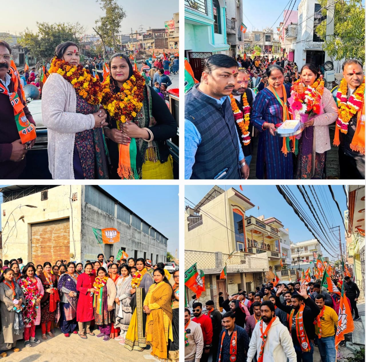 हरिद्वार – भाजपा महापौर प्रत्याशी किरण जैसल का रोड शो और जनसंपर्क आज वार्ड नंबर 59 सीतापुर, 60 हरिलोक और 35 कड़छ में संपन्न हुआ। इस अवसर पर किरण जैसल ने कहा जैसे-जैसे चुनाव की तिथि नजदीक आ रही है वैसे-वैसे हरिद्वार की जनता में भाजपा के प्रति उत्साह बढ़ता जा रहा है। हरिद्वार की जनता के आशीर्वाद से हरिद्वार नगर निगम को प्रदेश का नंबर वन नगर निगम बनाएंगे, ऐसा मुझे विश्वास है।