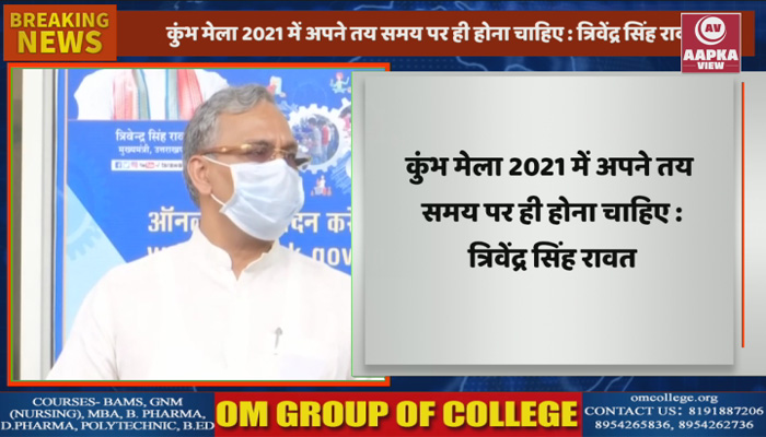 उत्तराखंड के सीएम त्रिवेंद्र सिंह रावत ने कहा कि कुंभ मेला 2021 में अपने तय समय पर ही होना चाहिए। अखाड़ा परिषद के हरिद्वार कुंभ तय मुहूर्त पर किए जाने के बयान पर शनिवार को रावत ने कहा कि वो अखाड़ा परिषद से सहमति रखते हैं, कुंभ मेला जिन रिवाजों के साथ होता आया है, उन्हीं के साथ 2021 में तय समय पर हो। दरअसल, कोरोना वायरस महामारी के चलते कुंभ जैसे बड़े आयोजन को लेकर कई तरह के सवाल उठ रहे हैं।
