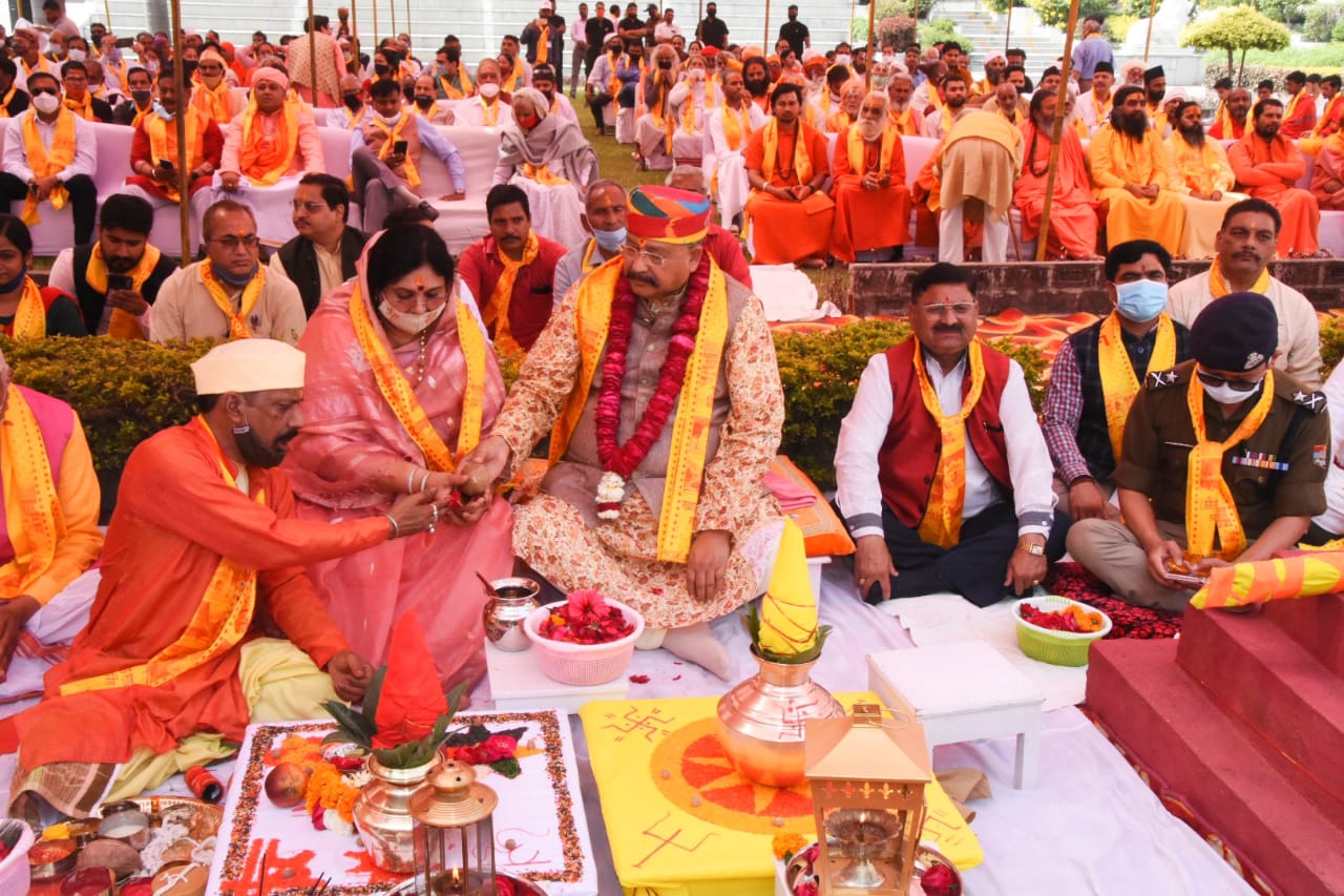 इस मौके पर मुख्य यजमान कैबिनेट मंत्री सतपाल महाराज और पूर्व कैबिनेट मंत्री अमृता रावत ने कार्यक्रम में ध्वजा स्थापना के लिए वैदिक रीति रिवाज से कलश पूजन अर्चन किया।