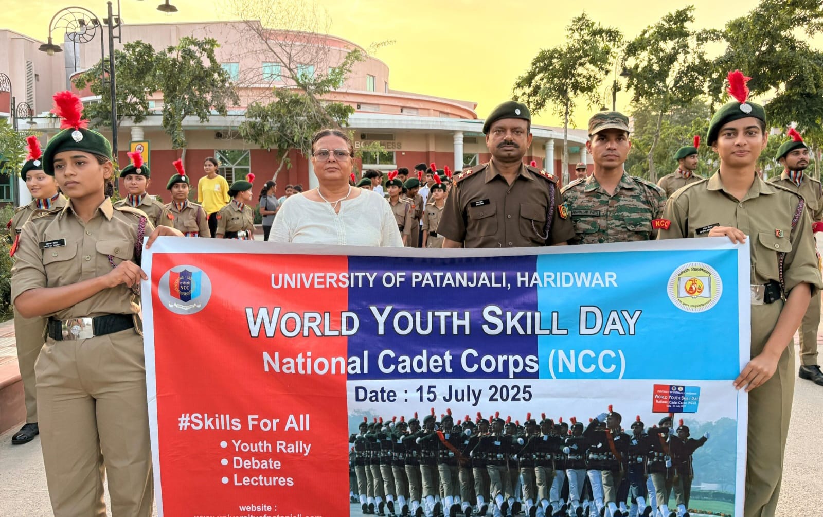 हरिद्वार – पतंजलि विश्वविद्यालय, हरिद्वार में 15 जुलाई को विश्व युवा कौशल दिवस पर एक भव्य और प्रेरणादायक कार्यक्रम का आयोजन किया गया। यह दिन विशेष रूप से युवाओं के कौशल विकास, करियर मार्गदर्शन, और राष्ट्र सेवा की भावना को जागृत करने हेतु समर्पित रहा। विश्वविद्यालय के समस्त विभागों के छात्र-छात्राओं के साथ-साथ एनसीसी कैडेट्स की सक्रिय सहभागिता ने कार्यक्रम को और भी प्रभावशाली बना दिया।