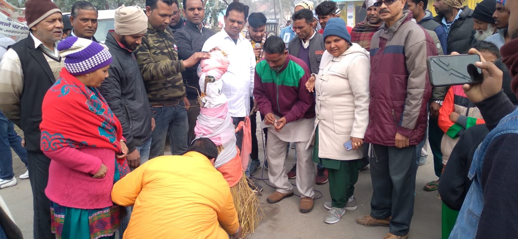 लक्सर (हरिद्वार) – उत्तराखंड कांग्रेस प्रदेश अध्यक्ष प्रीतम सिंह के आह्वान पर पूरे प्रदेश में केंद्र सरकार का पुतला फूंका गया। देश में तेजी से बढ़ती महंगाई के विरुद्ध तथा किसान आंदोलन के समर्थन में काँग्रेस कार्यकर्ताओं ने लक्सर स्थित लक्सरी पुलिया पर केंद सरकार का पुतला फूंका। बड़ी संख्या में शामिल काँग्रेस कार्यकर्ताओं ने केन्द्र सरकार के खिलाफ जमकर नारेबाजी भी की। किसान। इस दौरान काँग्रेस सेवादल के प्रदेश अध्यक्ष राजेश रस्तोगी ने कहा कि देश में तेजी से बढ़ती महंगाई को नियंत्रित करने में मोदी सरकार व प्रदेश में त्रिवेंद्र रावत की सरकार पूर्ण रूप से फेल हो चुकी है। लोगों से रोजगार को छीना जा रहा है। राज्य के युवाओं का भविष्य चौपट किया जा रहा है। सरकारी भर्तियों को नहीं खोला जा रहा है। डीजल पेट्रोल पर बढ़ते दामों ने गरीब वर्ग को कमजोर किया है। किसान के गन्ने का भुगतान नहीं किया गया है। जनता में भाजपा सरकार के विरुद्ध बहुत बड़ी नाराजगी है, ऐसे समय में प्रत्येक कांग्रेसी की जिम्मेदारी बनती है कि वह अपनी पार्टी का प्रचार प्रसार कर जनता से जुडे और कांग्रेस को शक्तिशाली बनाएं। विरोध प्रदर्शन करने वालो में कांग्रेस के जिला महासचिव सचिन विस्वास, जिला प्रभारी चौधरी लोकेश कुमार, कांग्रेस सेवादल की सदस्य बबली देवी, अल्पसंख्यक महासचिव फिरोज सिद्दीकी, नगर महामंत्री अजय वर्मा एडवोकेट, नगर महामंत्री वसीम अकरम, सभासद प्रतिनिधि जुल्फीकार अली उर्फ भुट्टो, कांग्रेस नेता बाबर खान, युवा नेता अर्पित गुप्ता, विशाल सिंघल, रविन्द्र कुमार, मोहन सैनी, आशीष धीमान, अरुण वाल्मीकि, ईश्वरपाल वाल्मीकि, मौ0 उस्मान, अदनान राणा, आदिल हसन, शाहरुख अंसारी, शहजाद अली, इब्राहिम, साजिद, इरफान, जीशान अली, सुमित बर्मन, विशाल कुमार, शुभम नामदेव, दीपक नामदेव, सानू नामदेव, निशांत रविंदर, नितिन बाल्मीकि, अनीस राव, ईश्वर बाल्मीकि, अरुण वाल्मीकि, भोला नामदेव, बंटी मिंटू गिरी, नाथी गिरी और नगर अध्यक्ष देवेश राणा आदि कार्यकर्ता उपस्थित रहे।