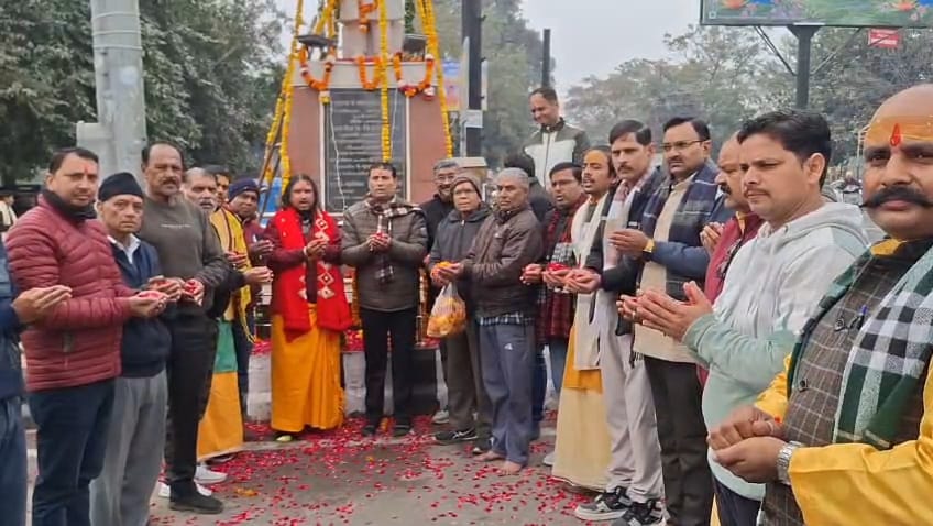 अखंड परशुराम अखाड़े से जुड़े लोगों ने मदन मोहन मालवीय की मूर्ति पर फूल चढ़ा कर उन्हें श्रद्धांजलि दी। इस दौरान उन्होंने कहा कि मदन मोहन मालवीय ने सनातन और समाज के लिए कई उल्लेखनीय कार्य किए हैं। इसके लिए महात्मा गांधी ने उन्हें महामना की उपाधि दी थी। आज के युवाओं को मदन मोहन मालवीय के बारे में जानना चाहिए।