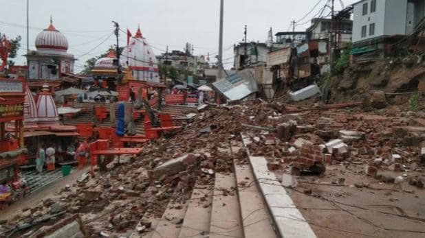 हरिद्वार में देर रात हुई तेज बारिश के साथ आकाशीय बिजली गिरने से प्रसिद्ध हर की पैड़ी की दीवार ढह गई है। दीवार गिरने से हर की पौड़ी पर स्थित मंदिरों तक मलवा चारों तरफ फैल गया, गनीमत यह रही की दीवार रात के वक्त गिरी अगर यह हादसा दिन के वक्त हुआ होता तो बहुत बड़ी जान माल का नुकसान हो सकता था, हर की पैड़ी की दीवार गिरने की सूचना मिलने पर गंगा सभा के पदाधिकारी, साधु संत और जिला प्रशासन की टीम आनन-फानन में हर की पौड़ी पहुंचे, स्थानीय लोग आकाशीय बिजली से दीवार गिरने के साथ-साथ हर की पौड़ी पर चल रहे हैं भूमिगत बिजली लाइन के कार्य और गैस पाइपलाइन के कार्य की खुदाई से हुए गड्ढों में बरसात का पानी भरने को भी इस दीवार की गिरने की वजह मानते हुए जिला प्रशासन की कार्यशैली पर सवाल खड़े कर रहे हैं ।