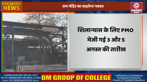 अयोध्या में राम मंदिर निर्माण को लेकर रामजन्मभूमि तीर्थ क्षेत्र ट्रस्ट की शनिवार को बैठक हुई. बैठक में शिलान्यास की तारीख पर चर्चा हुई. प्रधानमंत्री कार्यालय को ट्र्स्ट की तरफ से 3 अगस्त और 5 अगस्त की तारीख भेजी गई है. शिलान्यास की तारीख पर आखिरी फैसला प्रधानमंत्री कार्यालय करेगा. इसके अलावा बैठक में मंदिर की ऊंचाई और निर्माण की व्यवस्थाओं पर भी चर्चा हुई. ये बैठक अयोध्या सर्किट हाउस में दोपहर तीन बजे शुरू हुई. करीब ढाई घंटे तक ट्रस्ट की बैठक चली. मंदिर के नक्शे में भी बदलाव किया जाएगा.
