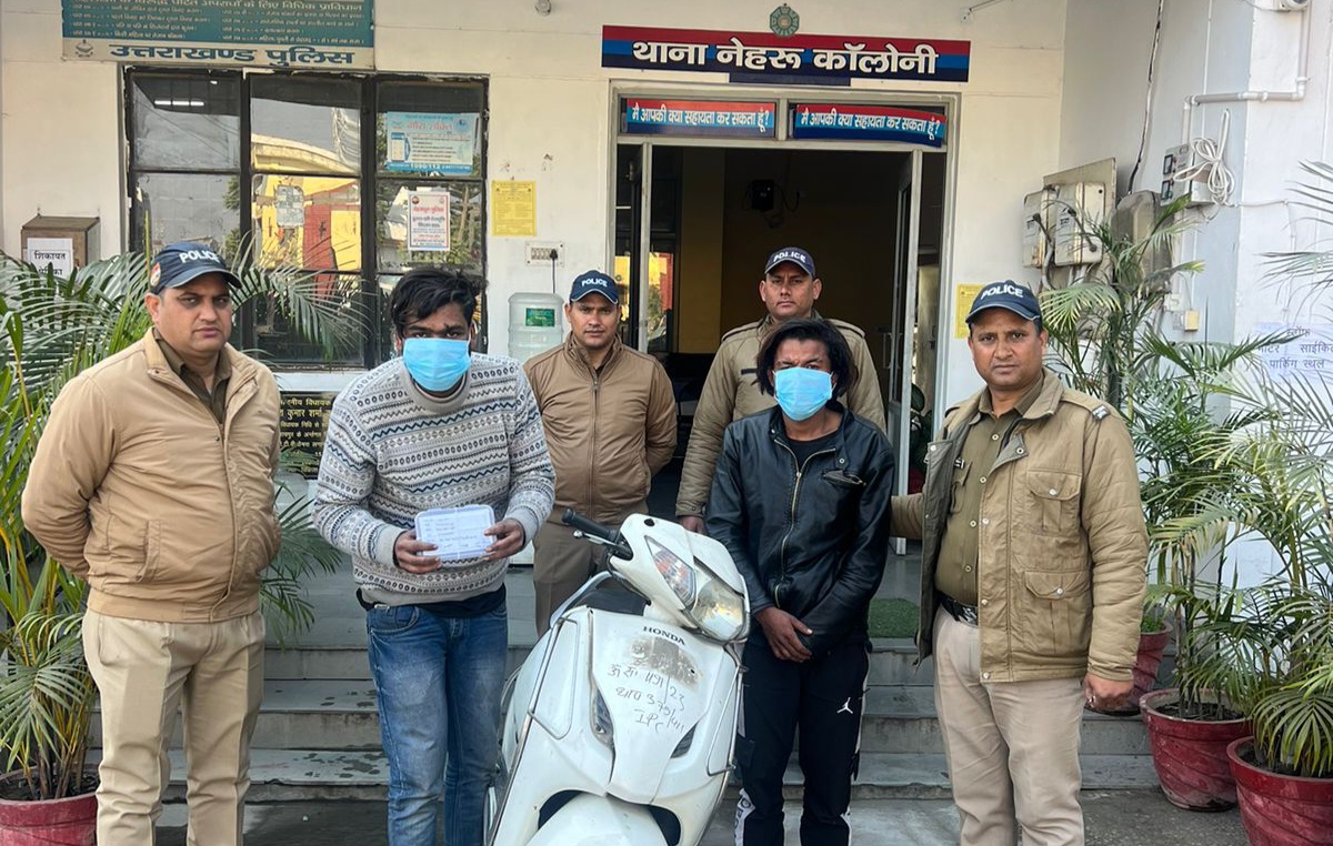 30 दिसंबर को मुखबीर द्वारा सूचना दी गई कि जिन लड़कों द्वारा मोबाइल लूट की है वह डोनो लड़के एक्टिवा में दून यूनिवर्सिटी रोड से नई बस्ती की और जा रहे हैं इस सुचना पर टीम द्वारा नई बस्ती पुल पर चेकिंग अभियान चलाया गया चेकिंग के दौरान दो लड़के स्कूटी से नई बस्ती की आ रहे थे जिन्हें पुलिस टीम द्वारा दोनों को पकड़ लिया। पुलिस द्वारा नाम पता पूछने पर दोनों लडको ने अपना अपना नाम रोशन थापा उर्फ रॉनी और विशाल चौधरी बताया। स्कूटी के बारे में पूछने पर बताया कि स्कूटी हमारी नहीं है हमने स्कूटी नेहरू कॉलोनी से चोरी की थी।