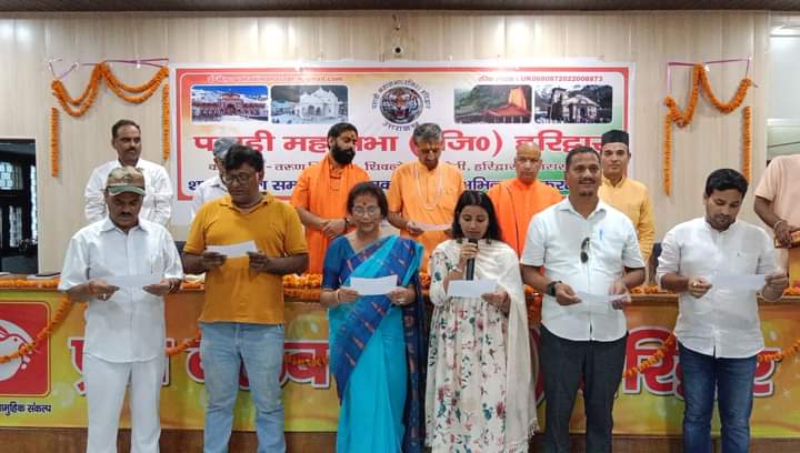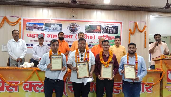 हरिद्वार – पहाड़ी महासभा का शपथ ग्रहण समारोह आज प्रेस क्लब में समपन्न हो गया है। समारोह में उपस्थित रघुवीर दास जी महाराज, सा0 सेनानायक पीएसी सुरजीत पंवार, महंत दिनेशानंद भारती जी महाराज, महंत योगेन्द्रानंद जी महाराज, चुनाव अधिकारी त्रिलोकचंद भट्ट ने नवनिर्वाचित अध्य्क्ष तरुण व्यास, उपाध्यक्ष मयंक पोखरियाल, महासचिव जसवंत बिष्ट, कोष सचिव तरुण जोशी, महिला प्रकोष्ठ अध्य्क्ष सरिता पुरोहित, महासचिव महिला प्रकोष्ठ मीरा रतूड़ी, कार्यकारणी सदस्य निशा नोडियाल, लता जोशी, मनोज रावत, रमेश चंद्र पंत, अतुल गोसाई, रवि बाबु शर्मा को पद की शपथ दिलाई।