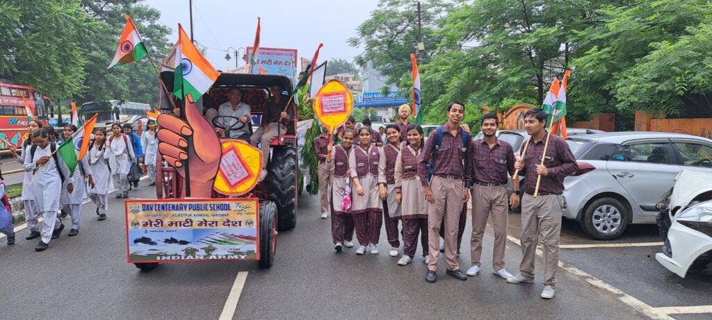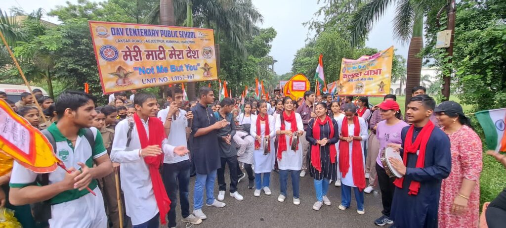 हरिद्वार – आजादी का अमृत महोत्सव में ‘मेरी माटी मेरा देश’ कार्यक्रम के अंतर्गत तिरंगा यात्रा रैली का आयोजन ऋषिकुल मैदान से भल्ला कॉलेज हरिद्वार तक किया गया। इस रैली के आयोजन में डीएवी सेंटेनरी पब्लिक स्कूल हरिद्वार के राष्ट्रीय स्वयं सेवा संघ एन.एस.एस. के स्वयं सेवकों ने ‘मेरा मेरी माटी मेरा देश’ पर एक झांकी प्रदर्शित की और नुक्कड़ नाटक प्रस्तुत किया।