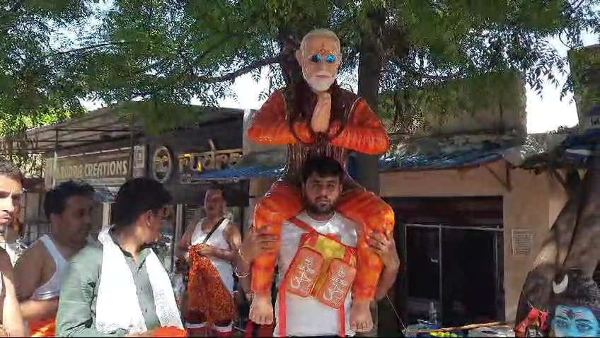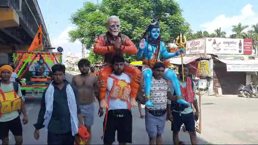 रूपेंद्र तोमर नाम का कांवड़िया प्रधानमंत्री नरेंद्र मोदी से इतना प्रभावित है कि नरेंद्र मोदी की मूर्ति को गंगा स्नान कराके अपने कंधे पर बैठाकर अपने गंतव्य की ओर रवाना हुआ।
