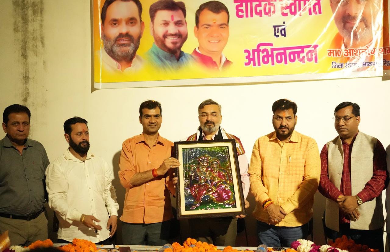 हरिद्वार – भाजपा नेता संजीव चौधरी के टिहरी विस्थापित शिवालिक नगर कार्यालय पर राष्ट्रीय व्यापार मण्डल युवा वाल्मीकि सभा व भाजपा नेताओ ने नवनियुक्त भाजपा जिला अध्यक्ष आशुतोष शर्मा का पुष्पवर्षा व ढोल नगाड़ो के साथ भव्य स्वागत किया। इस अवसर पर नवनियुक्त जिला अध्यक्ष आशुतोष शर्मा ने कहा कि भाजपा ने मुझको जिला अध्यक्ष बना कर जो सम्मान दिया है उसके लिए मैं पार्टी नेतृत्व का जीवन भर आभारी रहुगा और आगामी विधान सभा चुनाव में हरिद्वार जिले की पांचो सीट भाजपा के खाते में जाए उसके लिए दिन रात मेहनत करूगा। विधानसभा चुनाव और महाकुंभ के आयोजन वर्षों में मुझको जो महत्वपूर्ण जिम्मेदारी दी गई है मैं सभी कार्यकर्ताओ को साथ ले कर उसको पूरा करने के लिए सदैव तत्पर रहुगा।