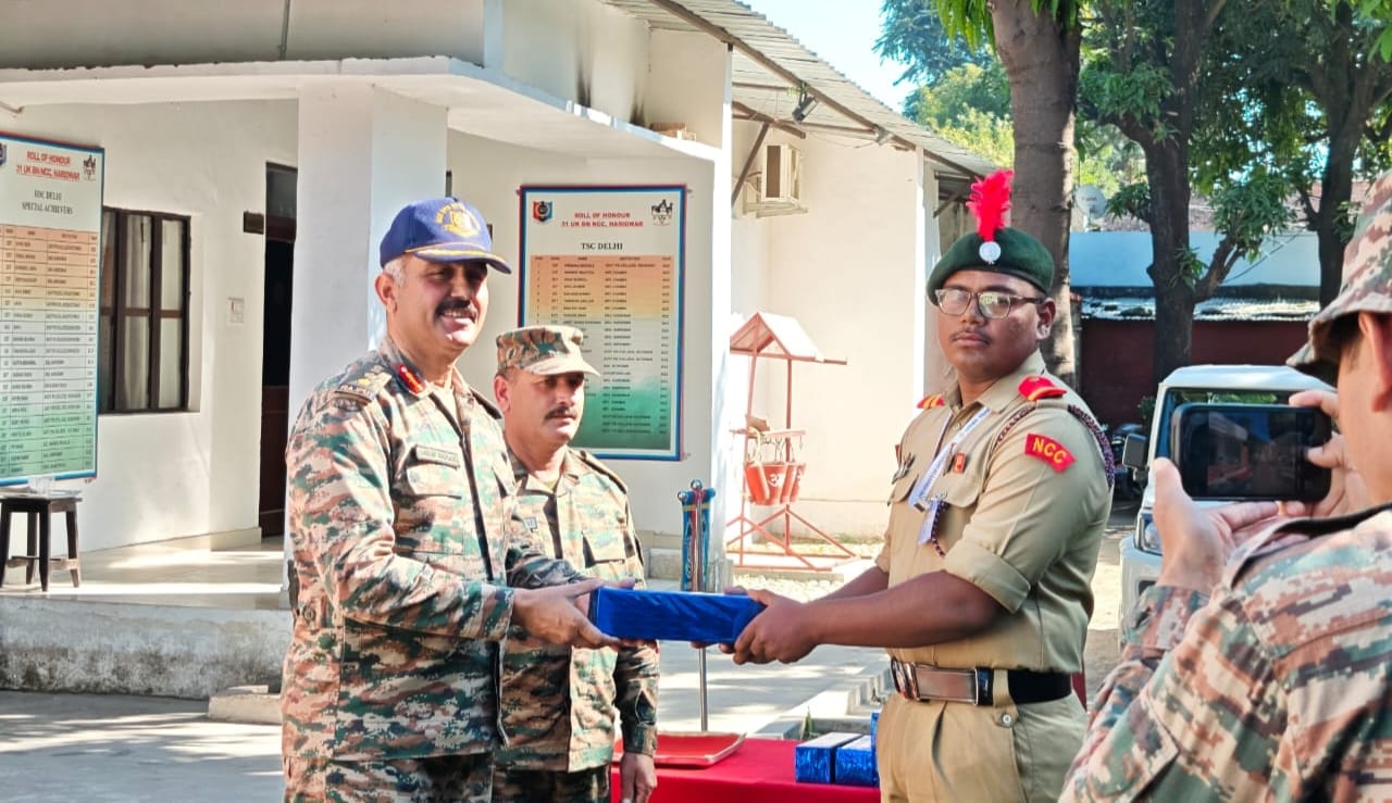 31 यूके बटालियन एनसीसी हरिद्वार में एक गरिमामय समारोह का आयोजन किया गया, जिसमें विभिन्न संस्थानों से आए एनसीसी अधिकारी, पीआई स्टाफ एवं कैडेट्स ने सहभागिता की। समारोह का मुख्य आकर्षण पतंजलि विश्वविद्यालय परिसर में संचालित एनसीसी कंपनी के सीनियर अंडर ऑफिसर ध्रुव देव का चयन बेस्ट एनसीसी कैडेट के रूप में रहा। ध्रुव देव को यह सम्मान उनके उत्कृष्ट अनुशासन, नियमित प्रशिक्षण, नेतृत्व क्षमता तथा एनसीसी गतिविधियों में सक्रिय और प्रेरणादायक योगदान के लिए प्रदान किया गया। उन्हें बटालियन के सेना अधिकारियों द्वारा प्रशस्ति पत्र एवं सम्मान से अलंकृत किया गया।