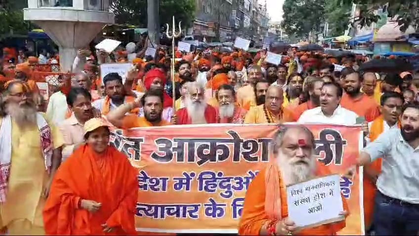 हरिद्वार – बांग्लादेश में हिंदुओं पर हो रहे अत्याचार के विरोध में आज हरिद्वार के साधु संतों ने आक्रोश मार्च निकाला। हरिद्वार के उछाली आश्रम से शुरू होकर हर की पौड़ी तक निकाले गए मार्च में बड़ी संख्या में साधु संत मौजूद रहे। हर की पौड़ी पहुंचने पर बांग्लादेश में हिंसा में मृत अल्पसंख्यकों हिंदुओं को श्रद्धांजलि दी गई। साधु संतों ने मांग की है कि बांग्लादेश में जो अत्याचार हिंदुओं पर हो रहे हैं उसे पर तत्काल रोक लगाई जाए।