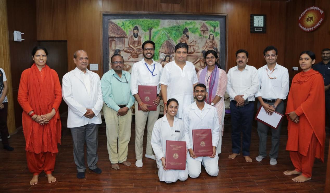 हरिद्वार – केंद्रीय आयुर्वेदिक विज्ञान अनुसंधान परिषद (CCRAS) ने आयुर्वेद स्नातकों में अनुसंधान के लिए रुचि और योग्यता को बढ़ावा देने के लिए आयुर्वेद अनुसंधान केन (स्पार्क) के लिए छात्र कार्यक्रम शुरू किया है जिसके अन्तर्गत पतंजलि भारतीय आयुर्विज्ञान एवं अनुसंधान संस्थान के चार स्नातकों को वर्ष 2023-24 के लिए छात्रवृत्ति से सम्मानित किया गया। जिन स्नातकों को सीसीआरएएस छात्रवृत्ति से सम्मानित किया गया, वे हैं- प्रियांशु पारिजा, इशिता अग्रवाल, श्रद्धा शर्मा और सुयश दुबे।