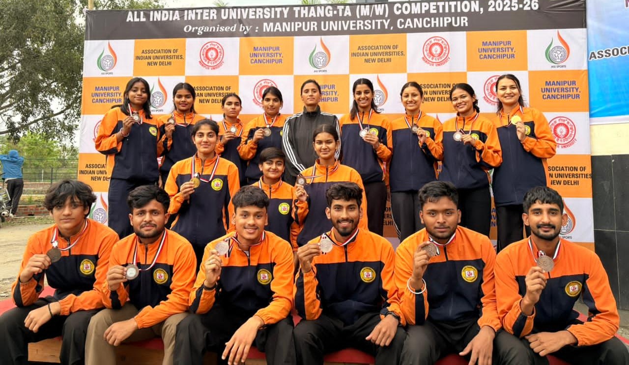हरिद्वार, 17 अप्रैल – उत्कृष्ट कौशल, अनुशासन और दृढ़ संकल्प का परिचय देते हुए पतंजलि विश्वविद्यालय के विद्यार्थियों ने अखिल भारतीय अंतर-विश्वविद्यालय थांग-टा प्रतियोगिता में उल्लेखनीय सफलता प्राप्त की। यह प्रतियोगिता मणिपुर विश्वविद्यालय, इंफाल में 6 से 9 अप्रैल 2026 तक आयोजित हुई। विश्वविद्यालय के दल ने कुल 17 पदक प्राप्त किए, जिनमें 2 स्वर्ण, 1 रजत तथा 14 कांस्य पदक शामिल हैं। यह उपलब्धि राष्ट्रीय स्तर पर विश्वविद्यालय के श्रेष्ठ प्रदर्शनों में से एक मानी जा रही है।