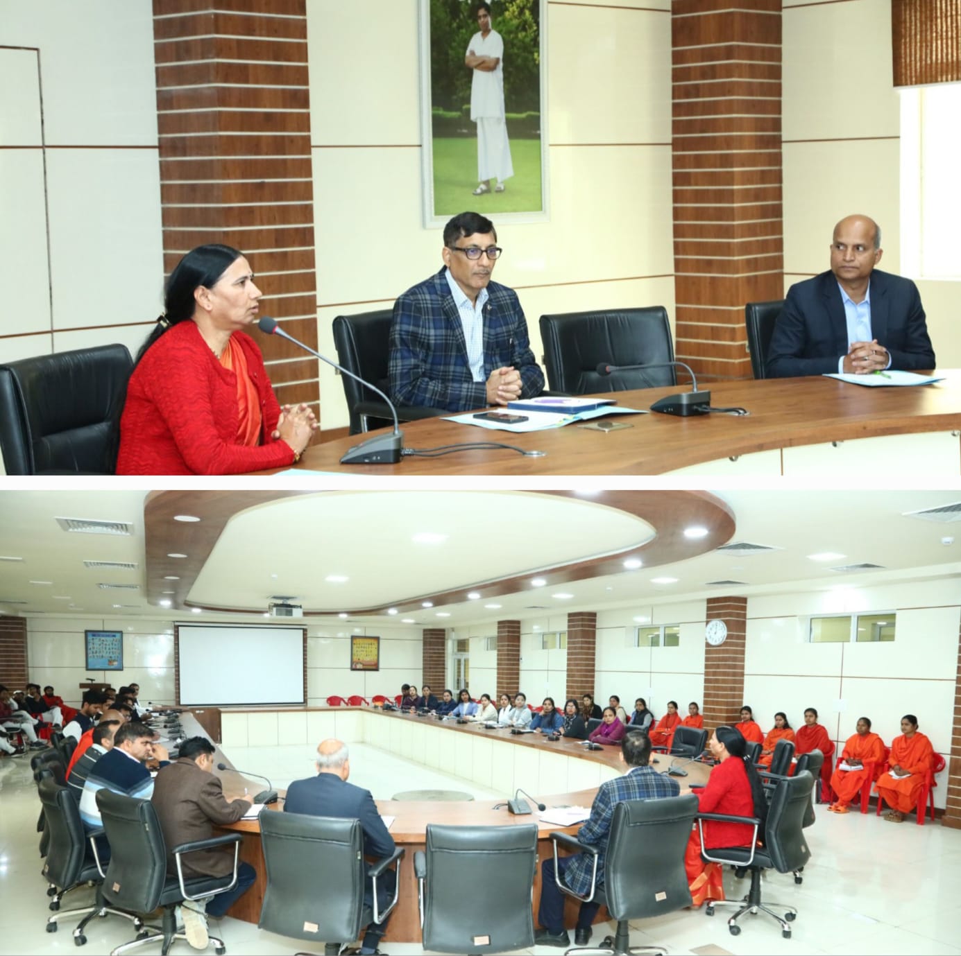 हरिद्वार – पतंजलि विश्वविद्यालय में आगामी 28 फरवरी से 02 मार्च को होने वाले वार्षिकोत्सव “अभ्युदय” के भव्य एवं सफल आयोजन के लिए कल एक महत्वपूर्ण समीक्षा बैठक आयोजित की गई। बैठक में विश्वविद्यालय के वरिष्ठ पदाधिकारियों, संकाय सदस्यों, आयोजन समिति के सदस्यों तथा अन्य संबंधित अधिकारियों ने भाग लिया। बैठक की अध्यक्षता करते हुए इस आयोजन की संयोजिका साध्वी देवप्रिया ने कहा कि “अभ्युदय” न केवल विश्वविद्यालय का वार्षिक उत्सव है, बल्कि यह एक ऐसा मंच है, जहां छात्र अपने कौशल, सृजनात्मकता और नेतृत्व क्षमता को प्रदर्शित करते हैं। उन्होंने आयोजन समिति सदस्यों से आग्रह किया कि वे ज़िम्मेदारी और सहयोग की भावना से कार्य करें तथा आयोजन की सभी गतिविधियों को सुचारू रूप से संपन्न कराएं। उन्होंने कहा कि यह आयोजन केवल मनोरंजन तक सीमित नहीं है, बल्कि यह छात्रों के सर्वांगीण विकास का एक अभिन्न अंग भी है।