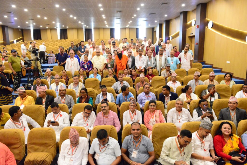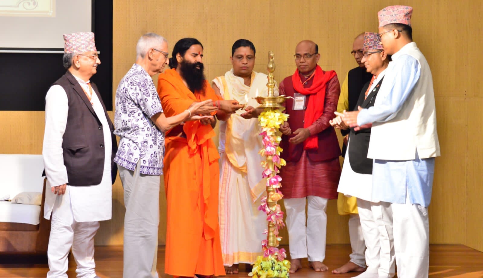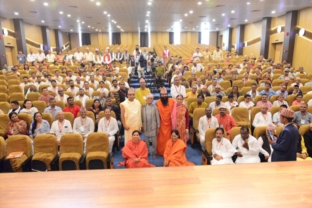 हरिद्वार – योगऋषि स्वामी रामदेव महाराज व आयुर्वेेद शिरोमणि आचार्य बालकृष्ण महाराज के पावन सान्निध्य में नेपाल राष्ट्र के बौद्धिक वर्ग के प्रबुद्धजनों के लिए पतंजलि योगपीठ हरिद्वार में पांच दिवसीय ‘प्रबुद्धजन योग विज्ञान शिविर’ का आरंभ हुआ। नेपाल से आए प्रबुद्धजनों ने प्रातः स्वामी रामदेव जी के साथ यज्ञ व योग-सत्र का लाभ लिया। तत्पश्चात पतंजलि विश्वविद्यालय के सभागार में दीप प्रज्ज्वलन के साथ कार्यक्रम का बौद्धिक सत्र प्रारंभ करते हुए स्वामी रामदेव जी ने कहा कि पतंजलि योगपीठ के द्वारा योग, आयुर्वेद, स्वदेशी, शिक्षा, चिकित्सा, चरित्र निर्माण, युग निर्माण व राष्ट्र निर्माण का जो कार्य चल रहा है, उसमें आप सब एकात्म हैं। उन्होंने कहा कि भारत व नेपाल दो राजनैतिक देश होते हुए भी हमारी सांस्कृतिक विरासत, हमारे पूर्वज, सिद्धांत व गंतव्य, हमारी एकरूपता हमें एक-दूसरे के निकट ले आती है।