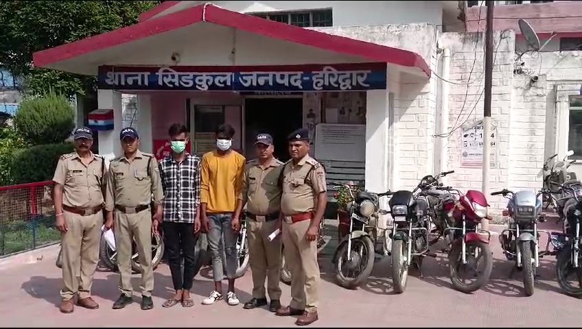 इसी क्रम में सिडकुल पुलिस द्वारा थाना क्षेत्र से दौराने चेकिंग दुपहिया वाहन चोर गिरोह के 02 सदस्यों को चोरी की बाइक के साथ दबोचा गया। जिनकी निशांदेही पर चोरी की अन्य 11 मोटर साइकिलें बरामद की गई।