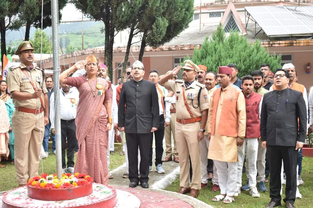 चंपावत – आज 77 वे स्वतंत्रता दिवस के अवसर पर जनपद प्रभारी व कैबिनेट मंत्री रेखा आर्या कलेक्ट्रेट पहुंची जहां उन्होंने “आजादी का अमृत महोत्सव” स्वतंत्रता दिवस के शुभ अवसर पर कलेक्ट्रट परिसर में ध्वजारोहण कर वीर शहीदों को नमन व वंदन किया।इस दौरान सभागार में स्कूली छात्राओं ने विभिन्न सांस्कृतिक प्रस्तुतियां प्रस्तुत की। इस दौरान प्रभारी मंत्री ने स्वतंत्रता दिवस के उपलक्ष्य में देश को स्वतंत्रता दिलाने वाले वीर स्वतंत्रता संग्राम सेनानियों के परिजनों को सम्मानित भी किया।साथ ही इस स्वतंत्रता दिवस के उपलक्ष्य में कलेक्ट्रेट परिसर में वृक्षारोपण भी किया।