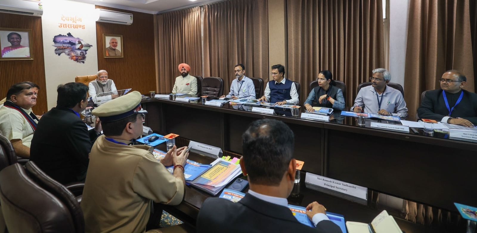 देहरादून – उत्तराखंड में प्राकृतिक आपदा से हुए नुकसान का जायजा लेने पहुंचे प्रधानमंत्री नरेंद्र मोदी ने गुरुवार को जौलीग्रांट एअरपोर्ट पर आपदा राहत कार्यों की गहन समीक्षा की। प्रधानमंत्री ने इस दौरान अलग-अलग क्षेत्रों में आपदा से हुए नुकसान का विस्तार से जानकारी लेने के साथ ही राहत एवं बचाव कार्यों की ताजा स्थिति और भविष्य की चुनौतियों पर राज्यपाल ले.ज. गुरमीत सिंह (से.नि.), मुख्यमंत्री पुष्कर सिंह धामी, केन्द्रीय राज्य मंत्री अजय टम्टा तथा राज्य के सांसदों सहित वरिष्ठ अधिकारियों के साथ विचार-विमर्श किया। प्रधानमंत्री नरेंद्र मोदी ने धराली, थराली सहित राज्य के आपदा प्रभावित अन्य क्षेत्रों में संचालित राहत एवं बचाव अभियानों में एनडीआरएफ, एसडीआरएफ सहित राज्य सरकार के विभिन्न विभागों के प्रयासों की सराहना की और राहत बचाव कार्यों में जुटे राज्य व केन्द्र सरकार के संगठनों के कार्मिकों से भेंट कर उनके अनुभव साझा किए। प्रधानमंत्री ने आपदा पीड़ितों से भी मुलाकात कर उनका ढांढस बंधाने के साथ ही समुचित मदद का भरोसा दिलाया।