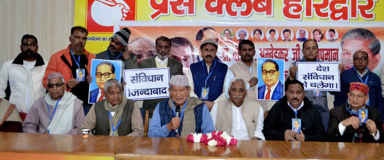 प्रैस क्लब में पत्रकार वार्ता को संबोधित करते हुए हरीश रावत ने कहा कि देश संविधान 75वीं वर्षगांठ मना रहा है। ऐसे में संसद केंद्रीय गृहमंत्री की टिप्पणी से भाजपा की डा.अंबेडकर के प्रति कुंठा और मानसिकता उजागर हो गयी है। डा.भीमराव अंबेडकर को भारत के ही नहीं बल्कि पूरे विश्व के करोड़ों लोग भगवान मानते हैं। गृहमंत्री की टिप्पणी से डा.अंबेडकर का अपमान ही नहीं हुआ। बल्कि इससे करोड़ों लोगों की भावनाएं भी आहत हुई हैं। उन्होंने कहा कि गृह मंत्री के बयान से उनके संगठन की भावना झलकती है। पहले हिन्दू महासभा फिर जनसंघ और अब भाजपा ने डा.अंबेडकर और सविंधान को कभी स्वीकार नहीं किया। सावरकर कहते थे कि यह संविधान स्वीकार करने योग्य नहीं है। देश मनु स्मृति के आधार पर चले। इसे लेकर हिन्दू महासभा ने संविधान व डा.अम्बेडकर के खिलाफ लगातार कैंपेन भी चलाया।