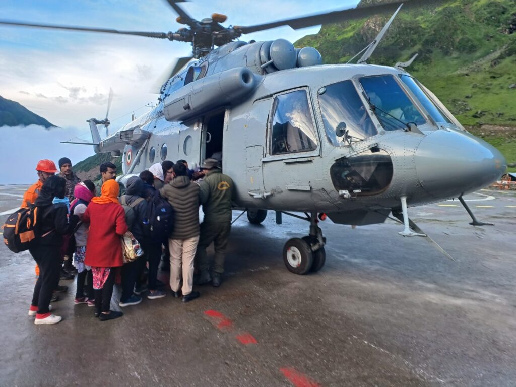 देहरादून – मुख्यमंत्री पुष्कर सिंह धामी के निकट परिवेक्षण में केदारनाथ धाम यात्रा मार्ग पर रेस्क्यू एव सर्च अभियान पांचवे दिन भी जारी है। सोमवार को केदार घाटी का मौसम साफ होने के साथ ही एमआई 17 और चिनूक से एयर लिफ्ट रेस्क्यू शुरू हो गया है। एमआई चारधाम हेलीपैड पर यात्रियों को उतार रहा है जबकि चिनूक गौचर हवाई पट्टी पर यात्रियों को उतरेगा। सुबह 09 बजे तक 133 लोगों को केदारनाथ से एमआई एव चिनूक एव छोटे हेलीकॉप्टर की मदद से सुरक्षित एयर लिफ्ट कर रेस्क्यू किए जा चुके हैं।