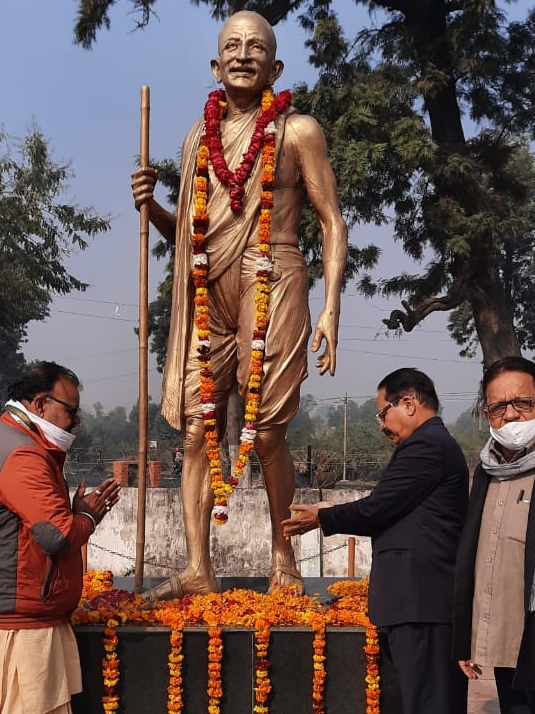 हरिद्वार – देश के राष्ट्रपिता महात्मा गांधी की पुण्यतिथि को पूरा देश बलिदान दिवस के रूप में मना रहा है। हरिद्वार में भी उनके बलिदान दिवस पर गाँधी पार्क में समाजसेवियों ने उनकी प्रतिमा पर पुष्प अर्पित कर उन्हें श्रद्धांजलि दी। इस दौरान समाजसेवी पंडित अधीर कौशिक ने कहा कि राष्ट्रपिता महात्मा गांधी के अथक प्रयासों से ही देश आजाद हुआ था। आज आवश्यकता है कि देश का हर नागरिक उनके दिखाए रास्ते पर चले और देश के विकास में अपना योगदान दे। वही उन्होंने ये भी कहा कि स्वच्छ भारत का जो सपना महात्मा गांधी ने देखा था आज वो साकार होता दिखाई दे रहा है। इसलिए देश के प्रत्येक नागरिक को देश की स्वच्छता बनाये रखने में अपना सहयोग देना चाहिए ताकि भारत विश्व मे स्वच्छता की मिसाल बन सके। उन्होंने युवाओं से आह्वान करते हुए कहा कि महात्मा गांधी के आदर्शों को अपनाकर देश की उन्नति में अपना योगदान दे।