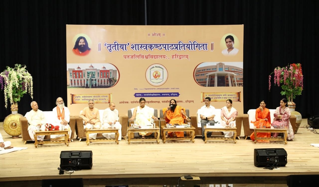 हरिद्वार – पतंजलि विश्वविद्यालय के सभागार में विश्वविद्यालय के कुलाधिपति स्वामी रामदेव महाराज तथा कुलपति आचार्य बालकृष्ण महाराज के दिशानिर्देशन में आयोजित तीन दिवसीय शास्त्र श्रवण प्रतियोगिता का समापन हुआ। इस अवसर कुलाधिपति ने कहा कि दुनिया में तीन बड़ी ताकतें हैं- धर्मसत्ता, अर्थसत्ता और राजसत्ता जो पूरी व्यवस्था को नियंत्रित करते हैं। युगों-युगों से धर्मसत्ता ही समाज की दशा-दिशा तय करती है। राजनीति कभी समाज बदलने का काम नहीं करती। स्वामी रामदेव महाराज ने कहा कि आने वाले 20-25 वर्ष बाद भारत ही नहीं पूरे विश्व का भविष्य पतंजलि योगपीठ से तय होगा, ऐसा व्यक्तित्व, चरित्र, नेतृत्व हम यहाँ गढ़ रहे हैं। उन्होंने कहा कि देश को राजनैतिक, आर्थिक, सामाजिक, वैचारिक सशक्त नेतृत्व की आवश्कता है। देश को कार्यपालिका, न्यायपालिका, मीडिया, कृषि, उद्योग, अनुसंधान, योग, शिक्षा, चिकित्सा आदि प्रत्येक क्षेत्र का नेतृत्व करने के लिए शीलवान, चरित्रवान, विराट व्यक्तित्व वाले पवित्र आत्माओं की आवश्कयता है। पतंजलि के शिक्षा अनुष्ठान का लक्ष्य विद्यार्थियों में ज्ञान, विज्ञान, प्रज्ञान, अनुसंधान और स्वाभिमान के साथ व्यक्तित्व निर्माण, चरित्र निर्माण से विराट व्यक्तित्व गढ़ना है। एक वाक्य में कहें तो यहाँ शिक्षा का उद्देश्य ‘एजुकेशन फॉर लीडरशिप’ है। हम पतंजलि संस्थान से नेतृत्व गढ़ेंगे और नेतृत्व के लिए सामान्य बोध (बेसिक एजुकेशन) तो अनिवार्य है ही साथ ही गणित, तकनीकी, आर्टिफिशियल इंटेलिजेंस, नेचर एण्ड इन्वायरमेंट, स्पेस साइंस, भौतिक विज्ञान, रसायन विज्ञान आधारित सारभूत विशेष बोध (स्पेशल एजुकेशन) की विशेष शिक्षा दी जा रही है। हमें यह सुनिश्चित करना है कि इस नेतृत्व में राजसिक व तामसिक शक्तियों का नहीं अपितु सात्विक शक्तियों का साम्राज्य हो, ऐसी हमारी अभिप्सा है।