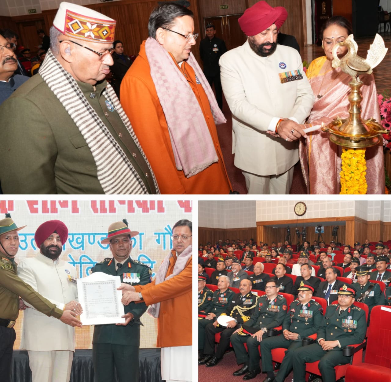 मुख्यमंत्री ने कहा कि देवभूमि उत्तराखंड वीरभूमि के रूप में भी जाना जाता है, क्योंकि भारतीय सेना के गौरवमयी इतिहास में उत्तराखण्ड के हमारे वीर सैनिकों का योगदान अतुलनीय रहा है। इतिहास इस बात का साक्षी है कि हमारे वीर सपूतों ने मातृभूमि की रक्षा के लिए अपने प्राणों की आहुति देने में कभी कोई कसर नहीं छोड़ी। उत्तराखंड के वीरों ने अपनी बहादुरी और साहस से हमेशा ये दिखलाया है कि देवभूमि ना केवल विश्व को शांति का मार्ग दिखा सकती है, बल्कि आवश्यकता पड़ने पर शौर्य और वीरता का भी प्रदर्शन कर सकती है। ये हम सभी के लिए गर्व की बात है कि उत्तराखण्ड जैसे छोटे राज्य में अब तक करीब 1834 सैनिकों को वीरता पुरस्कार से सम्मानित किया जा चुका है, और ये संख्या हर वर्ष निरंतर बढ़ती जा रही है।