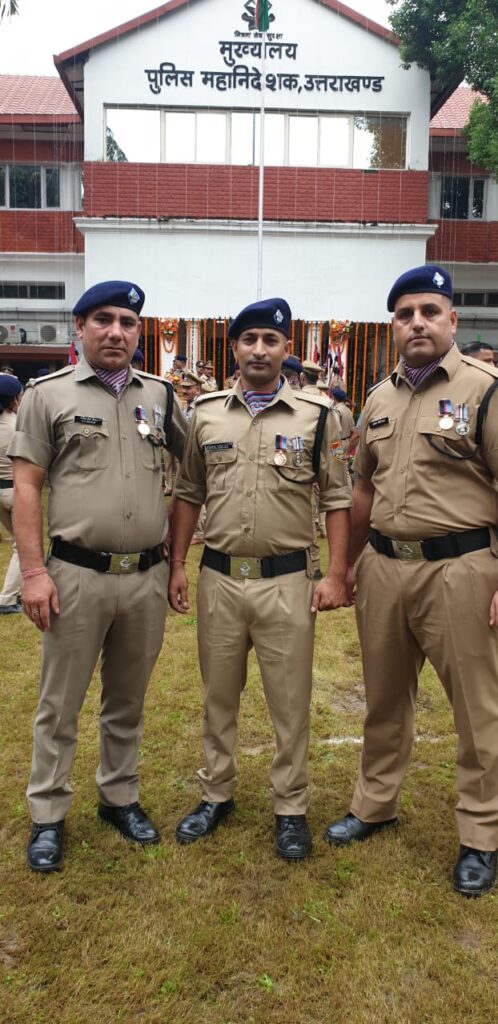 सेवा आधार एवं विशिष्ट कार्य करने पर डीजीपी उत्तराखंड अशोक कुमार द्वारा निरीक्षक मनोज मैनवाल व उ0नि0मनोहर भण्डारी सहित 09 पुलिस कर्मियों ने सेवा सम्मान चिन्ह प्राप्त किया।