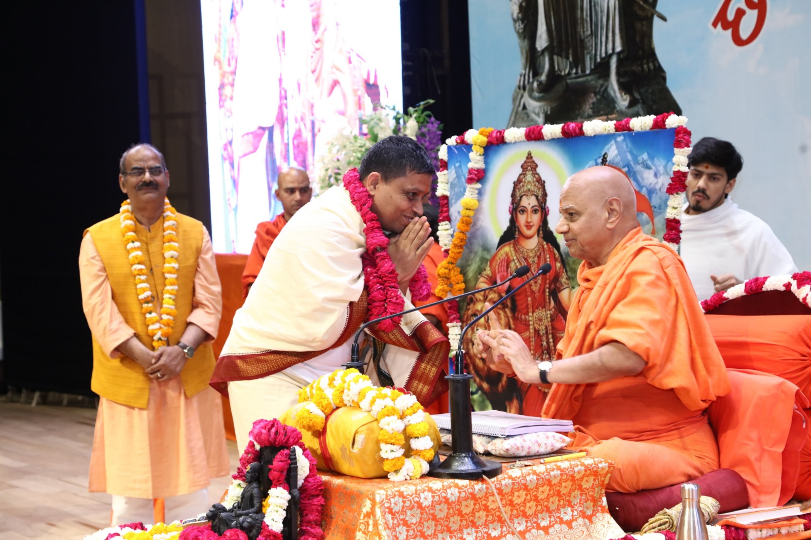 हरिद्वार, 11 अप्रैल – स्वामी गोविन्ददेव गिरि महाराज के श्रीमुख से “छत्रपति शिवाजी महाराज कथा’’ के तीसरे दिन का शुभारम्भ पतंजलि विश्वविद्यालय प्रांगण स्थित सभागार में हुआ जहाँ आचार्य बालकृष्ण जी महाराज ने व्यासपीठ को प्रणाम करते हुए स्वामी गोविन्द देव गिरि महाराज से कथा प्रारंभ करने का अनुरोध किया।