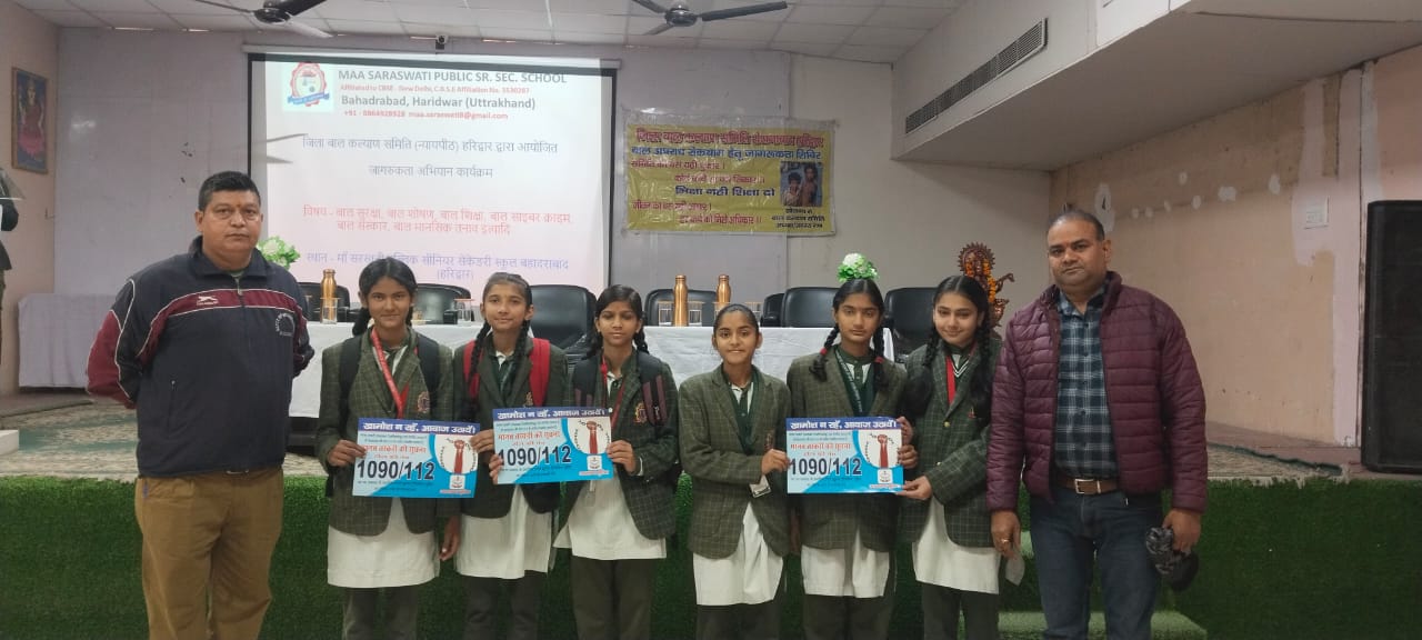 हरिद्वार – मां सरस्वती इंटर कॉलेज बहादराबाद में आज जन जागरुक गोष्ठी का आयोजन किया गया जिसमें बाल कल्याण समिति हरिद्वार, चाइल्ड लाइन हरिद्वार, बाल कल्याण संरक्षण इकाई हरिद्वार, थाना बहादराबाद एवं एंटी ह्यूमन ट्रैफिकिंग यूनिट हरिद्वार द्वारा विद्यालय के छात्र-छात्राओं अध्यापक गणों एवं अन्य कर्मचारी गणों को मानव तस्करी के अर्थ, प्रकार, इसकी रोकथाम में पुलिस की भूमिका एवं जन सहयोग के महत्व पर प्रकाश डाला गया।