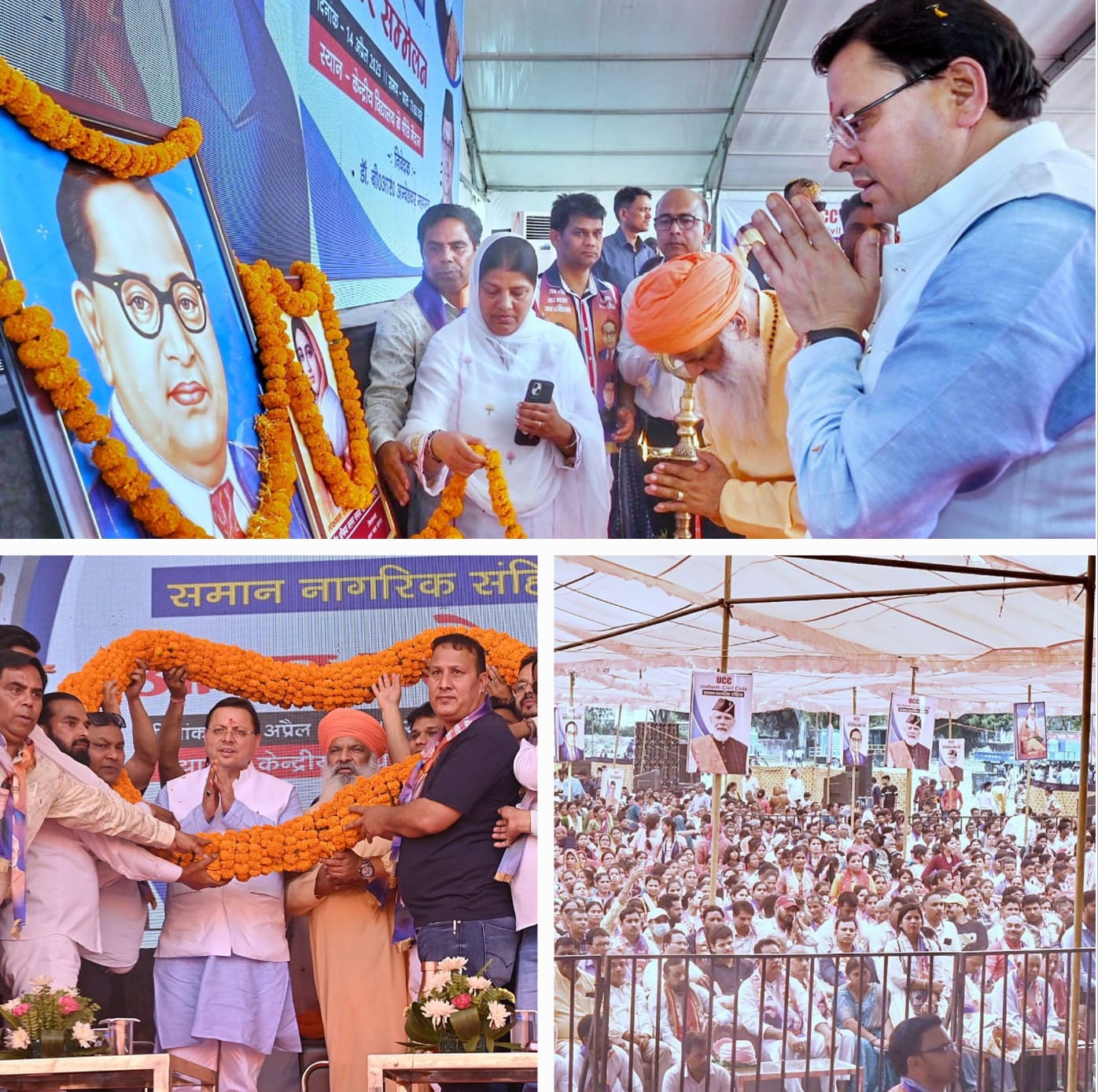डॉ भीमराव अंबेडकर जयंती के अवसर पर केंद्रीय विद्यालय में आयोजित इस कार्यक्रम में हजारों की तादाद में डॉ बी आर अंबेडकर महामंच से जुड़े सदस्य और स्थानीय लोग मौजूद रहे। मीडिया से बात करते हुए मुख्यमंत्री पुष्कर सिंह धामी ने कहा कि प्रधानमंत्री नरेंद्र मोदी के नेतृत्व में बाबा साहेब भीमराव अंबेडकर के सपनों को साकार करने की दिशा में लगातार काम किया जा रहा है। संविधान के जिस अनुच्छेद के तहत बाबा साहब ने यूसीसी लागू करने का प्रावधान किया था उसी के तहत उत्तराखंड में समान नागरिक संहिता लागू कर दी गई है।