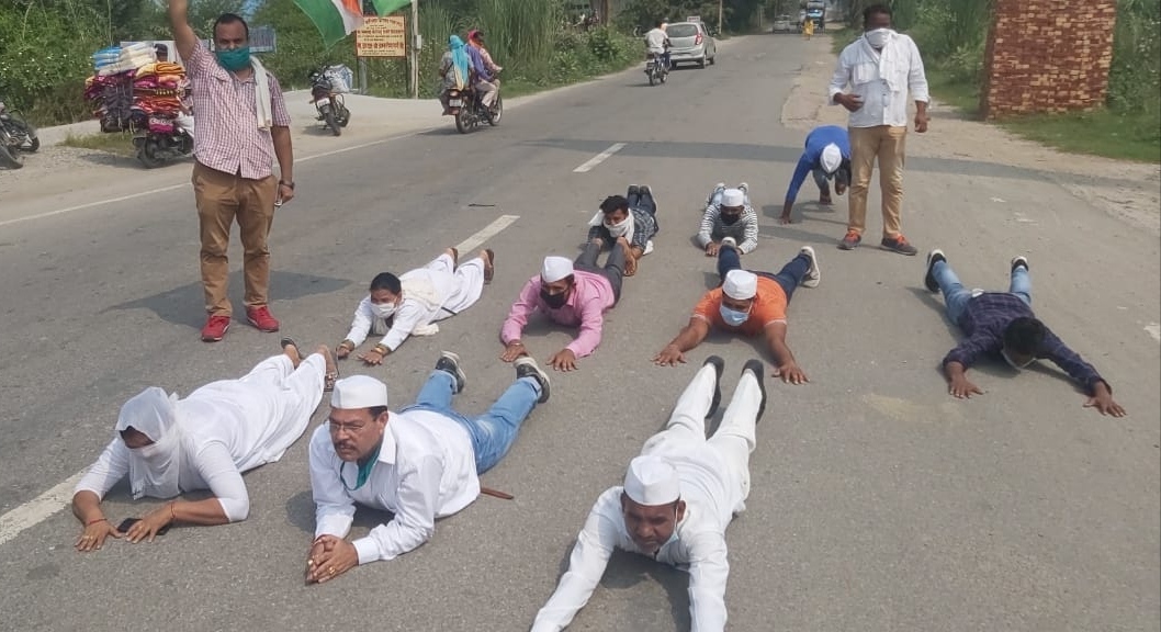हरिद्वार (लक्सर) – सालों से क्षतिग्रस्त पड़े लक्सर रुड़की मार्ग का निर्माण न होने से नाराज कांग्रेस सेवादल के प्रदेश अध्यक्ष राजेश रस्तोगी के नेतृत्व में भू नमन यात्रा निकालकर सरकार का विरोध किया गया। इस अनोखे विरोध प्रदर्शन में सेवादल के कार्यकर्ता सड़क पर लेट गए और लक्सर कोतवाली तिराहे से लेकर बस स्टैंड तक सड़क पर लेटकर यात्रा निकालकर अपना विरोध प्रकट किया।