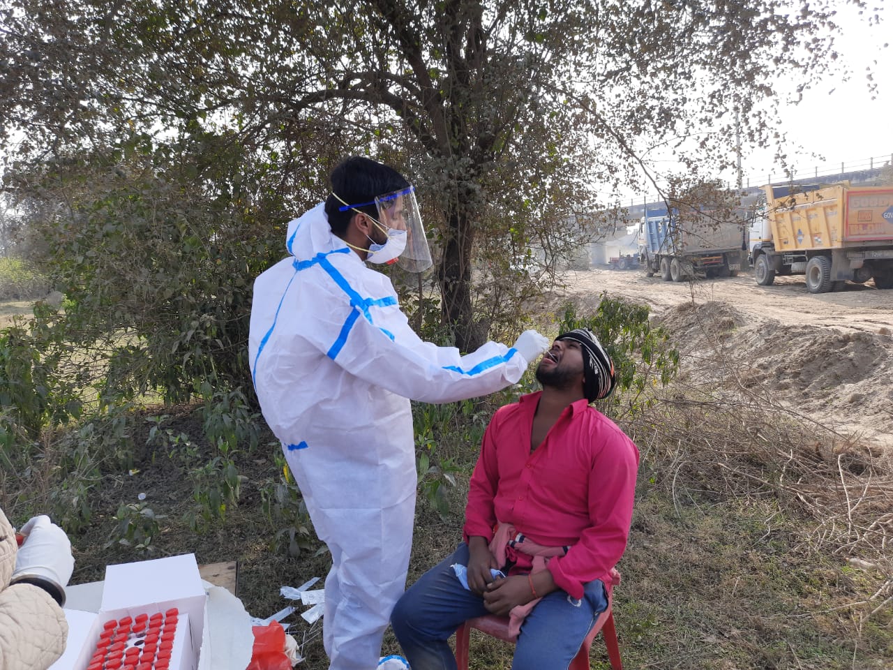 लालढांग (हरिद्वार) – उत्तराखंड वन विकास निगम द्वारा हरिद्वार के श्यामपुर क्षेत्र के रवासन व कोटा वाली नदी पर खनन कार्य कराया जा रहा है, जहां पर विभिन्न क्षेत्रों से आकार श्रमिक व वाहन चालकों द्वारा प्रतिदिन इन घाटों पर खनन सामग्री निकालने से लेकर खनन सामग्री ढोने का कार्य किया जा रहा है। वन विकास निगम ने मंगलवार को स्वास्थ्य विभाग हरिद्वार टीम के सहयोग से निशुल्क रवासन नदी के गेट नंबर 2 पर खनन श्रमिकों का कोविड-19 टेस्ट हुआ। टीम ने 110 लोगों का सैंपल लिया। वन विकास निगम द्वारा कराए जा रहे खनन कार्य रवासन नदी के 3 गेटो और कोटा वाली नदी के एक गेट पर चल रहा है। रवासन व कोटा वाली नदी के इन चारों गेटों पर सैकडो की संख्या में श्रमिक प्रतिदिन खनन कार्य में लगे रहते हैं। वन विकास निगम ने इन श्रमिकों के स्वास्थ्य के मद्देनजर यह कदम उठाया है। वन विकास निगम के सेक्शन प्रभारी रतिराम ने बताया की कोविड-19 टेस्ट के लिए सभी घाटों से श्रमिकों को रवासन गेट नंबर 2 पर बुलाकर टेस्टिंग कराई गयी है। स्वास्थ्य विभाग के कोविड-19 सैंपल ले गए हैं। डॉक्टर अनमोल सिंह ने बताया कि रवासन नदी के गेट नंबर 2 पर 110 लोगों के कोविड-19 सैंपल लिए गए हैं जिनकी रिपोर्ट एक-दो दिन में आ जाएगी।