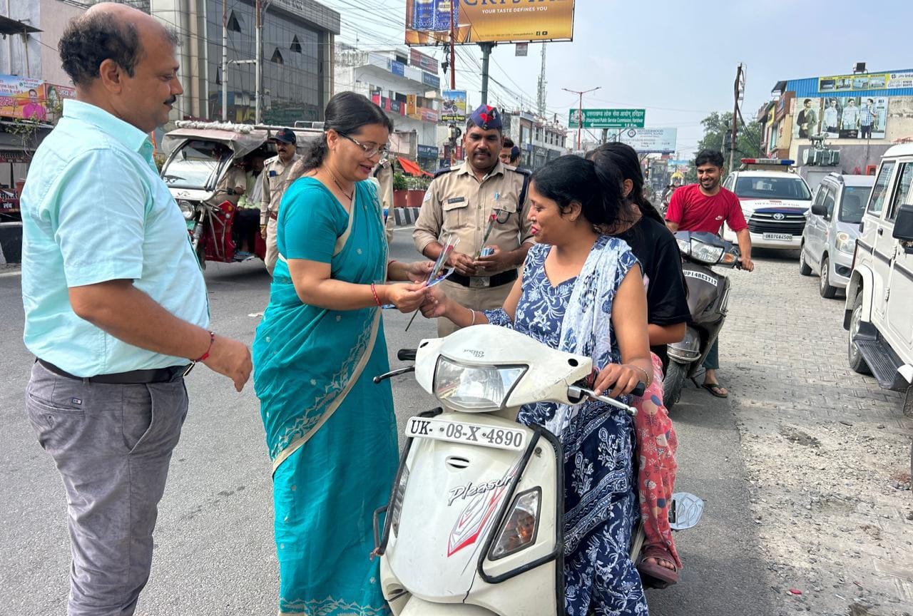 हरिद्वार – गाँधी जयन्ती पर सड़क सुरक्षा जागरूकता कार्यक्रम के अन्तर्गत दोपहिया एवं कार चालकों को जागरूक करने हेतु हरिद्वार क्षेत्र में नवोदय चौक मार्ग, पैन्टागन मॉल मार्ग, रानीपुर मोड़ आदि स्थानों पर दोपहिया वाहन चालकों को हैलमेट एवं कार चालकों को सीट बैल्ट के प्रयोग करने हेतु प्रेरित किया गया। बिना हैल्मेट एवं सीट बैल्ट पहने चालकों को फूल एवं कलम भेंट किये गये साथ ही हैलमेट एवं सीट बैल्ट पहने चालकों को यातायात नियमों के पालन करने पर बधाई एवं फूल भेंट किये गये।