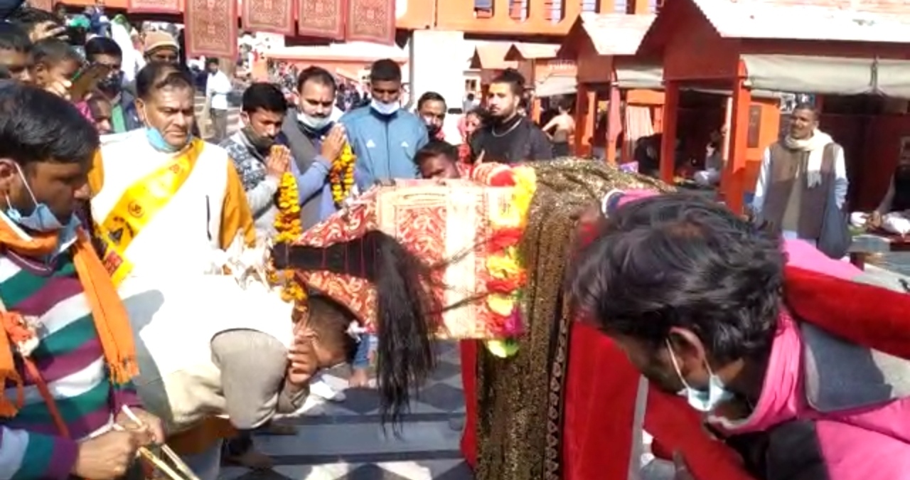 हरिद्वार – धर्मनगरी हरिद्वार में मंगलवार को हरकीपौडी स्थित पौराणिक ब्रह्मकुंड में पिथौरागढ़ और टिहरी जिले से लाई गई देव डोली को कुम्भ पर्व के मद्देनजर माँ गंगा में स्नान कराया गया। इससे पूर्व यह देव डोलि ईश्वर महादेव मंदिर जागेश्वर मंदिर से अल्मोड़ा, हल्द्वानी, दिनेशपुर बाजपु, रुद्रपुर, यमुनोत्री धाम आदि तीर्थ स्थलों का भ्रमण करते हुए हरिद्वार पहुची थी। हरिद्वार पहुच राधा कृष्ण आश्रम शांतिकुंज से भजन एवं देव ध्वनि रणसिंघा ढोल के साथ देव डोली नृत्य यात्रा की शुरुवात की गई। इस दौरान देव डोली यात्रा में उत्तराखंड के विभिन्न स्थानों से आए श्रद्धालुओ के द्वारा स्वच्छता के प्रति लोगो को जागरूक भी किया गया। नगर भ्रमण के दौरान इस देव डोली नृत्य यात्रा का हरिद्वार में जगह जगह साधु संतों ने भव्य स्वागत भी किया।