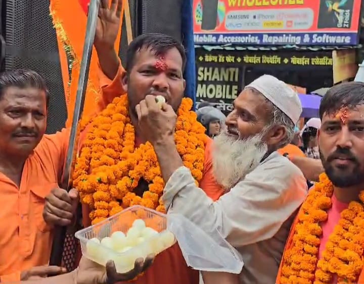 हल्द्वानी – हल्द्वानी के राजपुरा क्षेत्र से हरिद्वार कावड़ लेने जा रहे कांवड़ियों का भव्य स्वागत कर रवाना किया गया। इस दौरान कांवड़ियों के स्वागत में कौमी एकता की मिसाल भी देखने को मिली, हरिद्वार में कावड़ लेने जा रहे कावड़ियों के स्वागत में मुस्लिम समुदाय के लोग भी नजर आए। उन्होंने भी कावड़ियों को मिठाई खिलाकर उन्हें रवाना किया।