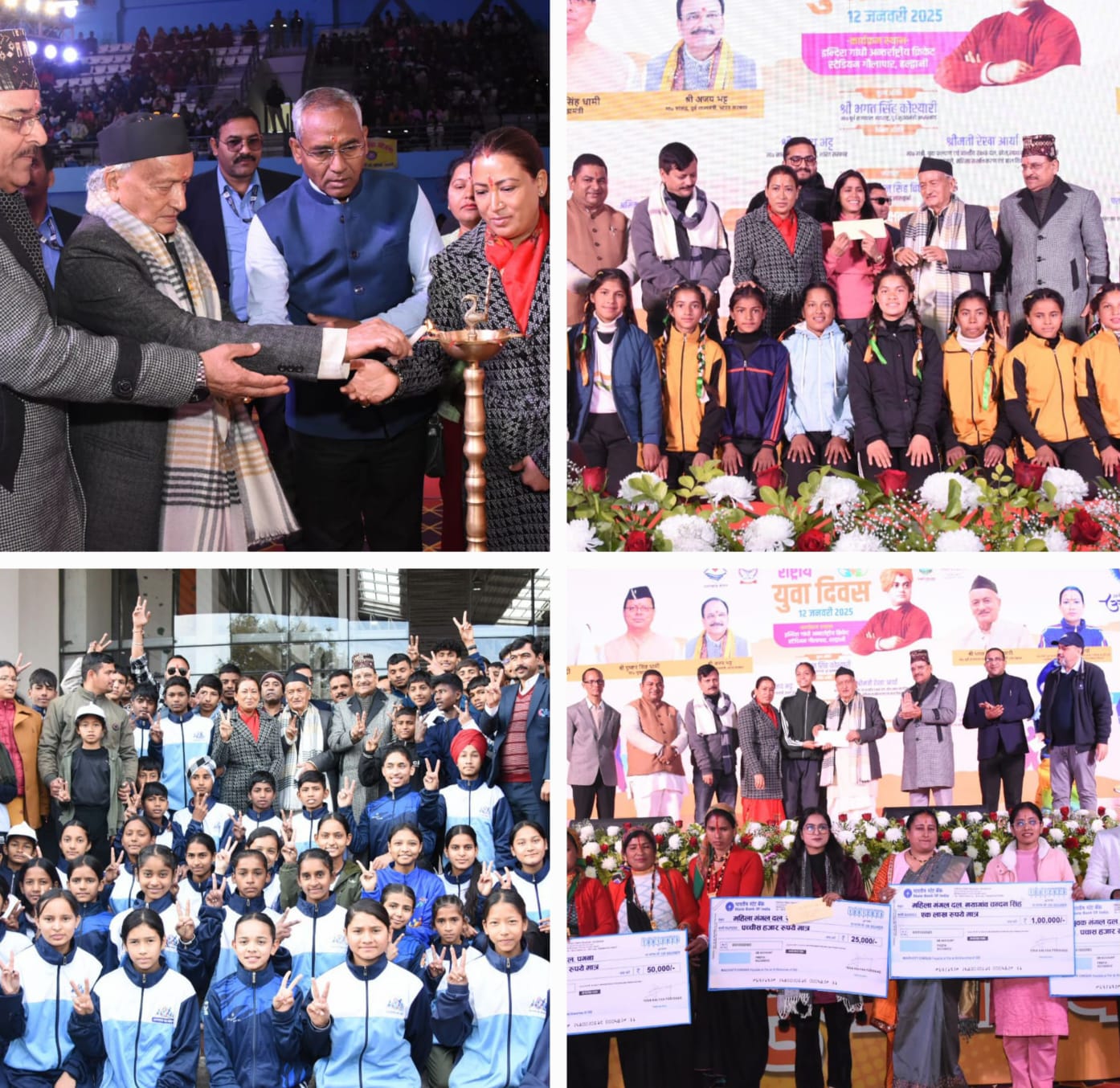 कार्यक्रम का शुभारंभ मुख्य अतिथि पूर्व मुख्यमंत्री भगत सिंह कोश्यारी, सांसद अजय भट्ट और कैबिनेट मंत्री रेखा आर्या ने किया। इस अवसर पर खेल मंत्री रेखा आर्या ने राष्ट्रीय खेलों में पंजीकरण करने वाले वॉलिंटियर्स से कहा कि इस आयोजन में आपके कंधों पर बहुत बड़ी जिम्मेदारी है। खेल मंत्री ने कहा कि यह युवा दिवस उस मौके पर मनाया जा रहा है जब प्रदेश अपने 25वें साल में प्रवेश करके पूर्ण युवा हो गया है। खेल मंत्री रेखा आर्या ने कहा कि रजत जयंती की बेला पर मुख्यमंत्री पुष्कर सिंह धामी के नेतृत्व में 38 वे राष्ट्रीय खेलों का बेहतरीन आयोजन किया जाएगा। उन्होंने कहा कि राष्ट्रीय खेलों में उत्तराखंड की टीमों का प्रदर्शन प्रदेश को खेल भूमि के रूप में स्थापित करेगा। स्वामी विवेकानंद के प्रसिद्ध उद्घोषं “उठो जागो” का आह्वान करते हुए प्रदेश के युवाओं को उनके जीवन दर्शन से प्रेरणा लेने की सीख दी।