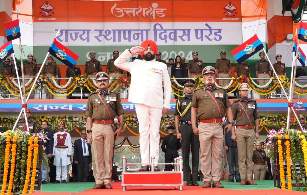 देहरादून – उत्तराखण्ड राज्य स्थापना दिवस के अवसर पर शनिवार को पुलिस लाईन, देहरादून में आयोजित मुख्य कार्यक्रम में राज्यपाल लेफ्टिनेंट जनरल गुरमीत सिंह (से नि) एवं मुख्यमंत्री पुष्कर सिंह धामी ने प्रतिभाग किया। इस अवसर पर राज्यपाल ने रैतिक परेड का निरीक्षण कर सलामी ली। राज्यपाल ने विशिष्ट सेवाओं के लिए ‘राष्ट्रपति पुलिस पदक’ एवं ‘पुलिस पदक’ प्राप्त पुलिस अधिकारियों को सम्मानित भी किया। (सूची संलग्न)